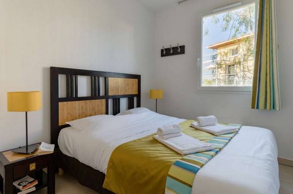 Residence Les Terrasses des Embiez ligger i Six Fours les Plages -  blot 10 km fra Toulon og tæt på de livlige feriebyer Sanary-sur-Mer (3 km) og Bandol (14 km). Byen er en charmerende kystdestination omgivet af 2450 hektar fyrreskov og har en idyllisk fiskerihavn, Le Brusc. Langs kysten strækker der sig 16 km med både sandstrande og klippefyldte småbugter.