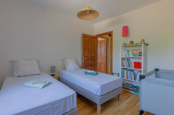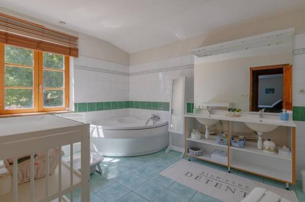 1. sal: 3 soveværelser (2 med 1 dobbeltseng 140x190 cm / 2 enkeltsenge 90x190 cm) hvoraf 1 med eget badeværelse (bruser), badeværelse (hjørnebadekar), separat toilet.
