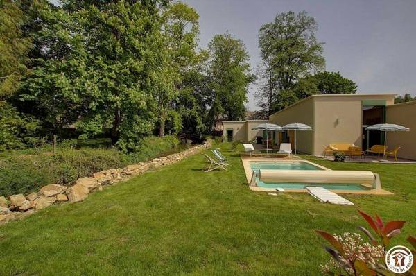 Denne fremragende og charmerende feriebolig, med indendørs og udendørs pool, ligger i rolige omgivelser i hjertet af en landsby i Bugey